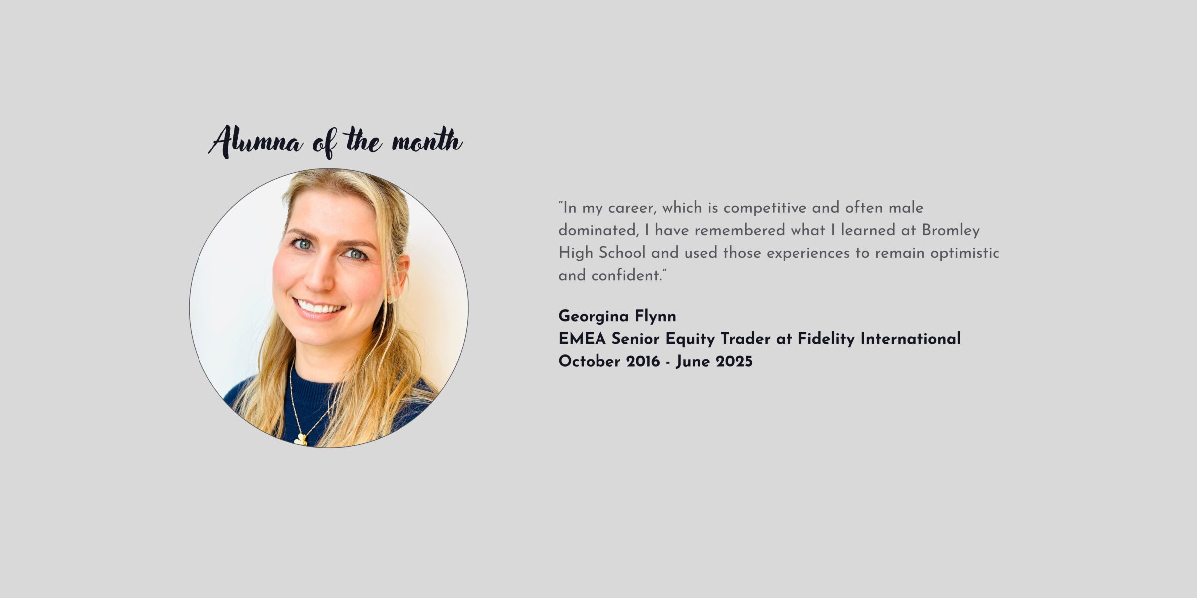For our Alumna of the Month interview, we spoke to Georgina Flynn, former EMEA Senior Equity Trader at Fidelity International.
