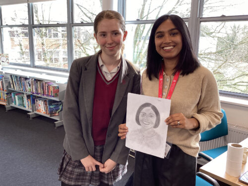 As per our tradition, Year 9 pupil Violet created a portrait of the Minerva speaker to commemorate the event