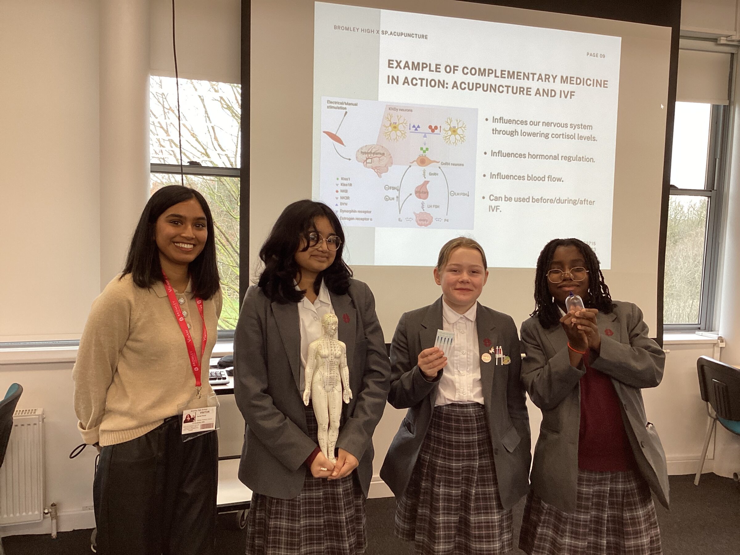The session also empowered students to navigate the “wellness” trends they encounter on social media, helping them to recognise health misinformation and identify reliable, evidence-based advice. The workshop concluded with a live demonstration of cupping and acupuncture (on a teacher!), giving pupils a first-hand look at these fascinating therapies in action.